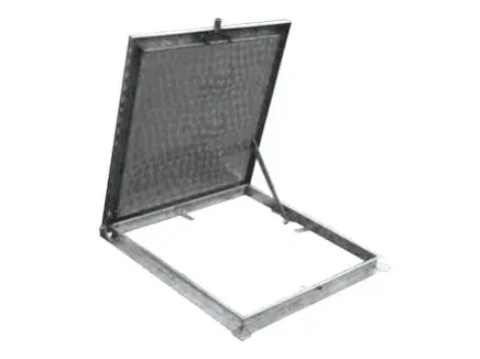 Konstrukcja włazu utrzymuje zarówno właz, jak i kratkę w bezpiecznych pozycjach.